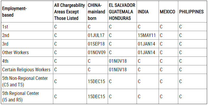 EB3技术劳工本月排期前进2个月,到了2018年5月15日;