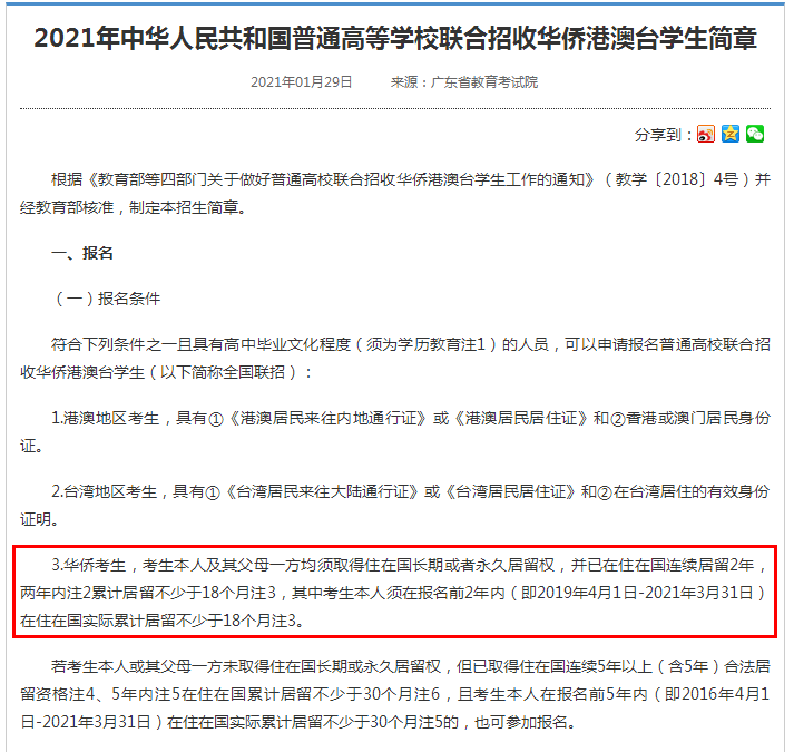 根据广东省教育考试院最新发布的学生简章规定,华侨生的的报考条件要满足: